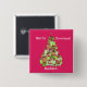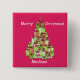 Personalise this name badge pin to wear to a Christmas party, meeting or other event to introduce yourself and say "Merry Christmas" or other words. Personalise your name below the tree. This Christmas tree is composted of stacks of green and red presents to form the shape of the tree. the presents are decorated with dots, stripes and swirls. The background is red. This design is original art by Phyllis Dobbs. Fully customisable to make it your pin.
