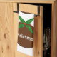 This awesome kitchen towel features a tasty looking chocolate brown coloured Christmas pudding with a sprig of holly on top. There is white text on the pudding that resembles frosted icing and reads "Merry Christmas" This text is customisable allowing you to personalise this kitchen towel if you would like to.