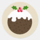A simple Christmas sticker featuring an illustration of a traditional Christmas pudding complete with white icing, holly leaves and berries. The background is beige but you can change it to anything you want. This would be perfect to seal the envelopes on your Christmas cards, to make homemade gift tags or to use to decorate gifts.