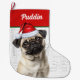 Christmas Pug Dog with Name Woof Large Christmas Stocking