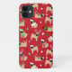 Christmas Pugs Phone Case, Cute Pug Dogs in Festive Holiday Outfits with a Red Background.