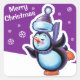 Christmas purple square sticker Penguin skating and other Snowfolk.