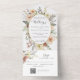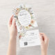 This elegant floral wedding all in one invitation is designed with an easy to tear off perforated RSVP postcard with a QR code. Simply fold the card, seal and send (no envelope needed).