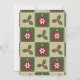 This invitation features four squares in green and tan that are adorned with red ornaments decorated with white snowflakes and green holly with red berries. White stitching adds a decorative touch, giving the repeating pattern the appearance of a quilt, creating a perfectly cosy feeling for the Christmas holiday. The lower portion of the card has some sample text that you can customise to create a personalised invite for your party or event.