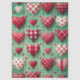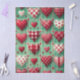 Christmas Quilted Hearts Green Red White Decoupage Tissue Paper