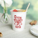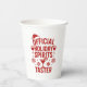 Quote: Official Holiday Spirits Taster.  Red text. Decorated with glasses of wine, Santa's hat, coctail glass and snow crystals,