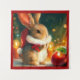 Get into the festive spirit with this cosy design of a rabbit wearing a Santa hat and a red scarf with a white fur trim. The image is a festive scene with a Christmas tree, candles, and lights. This warm and cosy image will make you feel right at home during the holiday season. Order now to add this charming Christmas rabbit to your digital collection!
