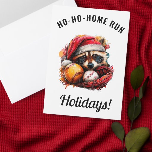Adorable Christmas wrapping paper featuring a cute raccoon in a Santa hat surrounded by baseballs, gloves, evergreen branches and red berries. This festive seamless pattern is perfect for wrapping gifts for baseball fans, kids, coaches and teammates, or any sports lover during the holiday season. Ideal for Christmas presents, stocking stuffers and team gift exchanges. Wrapping Paper