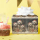 Adorable vintage Christmas wrapping paper with cute little Raccoons sitting by some wrapped gifts and wearing a cap just like Santa's