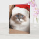Cute ragdoll cat with a Santa Claus hat in a generic cardboard box.