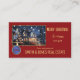 Christmas referral business card featuring your own logo on a red background with an illustration of a house and Christmas tree outline with festive snowflakes. On the back is your custom photo and a QR code template on red and gold. A great business card for a real estate agent and customisable for other professionals.
