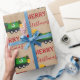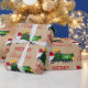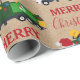 A cute illustration of a Christmas recycling garbage truck wearing a Santa hat and decorated in Christmas lights with words "Merry Christmas" and kraft brown paper look background. An ideal Christmas wrapping paper for garbage truck enthusiasts big or small, girls or boys.