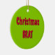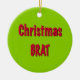 Round Shaped Christmas Tree Hanging Ceramic Ornament printed with Christmas Red And Brat Green text typography graphic art design illustration and select products collection by TheFabricSeal print on demand shop at Zazzle.com #ZazzleMade https://www.zazzle.com/store/thefabricseal TheFabricSeal©️Original.