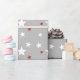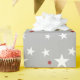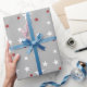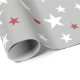 Christmas gift wrap for the holiday season, in silver grey, with red circles and white stars