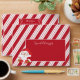 These cute Christmas envelopes with red and white stripes on the outside . The front has a large space for you to write the mailing name and address and a little Santa for cuteness . The text reads "Special delivery for" , but you can modify it with your own , like "kindly deliver to" or anything else you wish . The front has a spot for your own name and address . The inside has a fun surprising candy cane and snowflake pattern on a red background .
