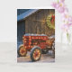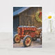 Christmas Red Farm Tractor With Glowing Wreath Card