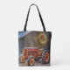 Christmas Red Farm Tractor With Glowing Wreath Tote Bag
