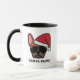 This cute festive coffee mug makes an excellent Christmas gift for french bulldog fans. The design features a red fawn coloured french bulldog wearing a red Santa hat and aviator sunglasses.