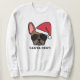 Join in the festive fun with this cute Christmas sweatshirt. The design features a red fawn coloured french bulldog wearing a red Santa hat and aviator sunglasses with the wording "Santa Paws" printed underneath.