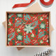 This beautiful Christmas wrapping paper features hand drawn floral elements in various shades of green, mint, teal, off-white. Included are pine, flowers, sprigs, leaves, berries in a stylish modern pattern all-over print. The background colour is a Christmas traditional, classical red. Original Artwork by Caroline Bonne Müller