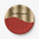 Christmas Red Floral with Gold Ribbon and Name Paper Plate