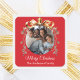 Christmas red gold bauble family photo square sticker