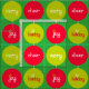 Simple circles red and green patterned, Christmas hanging baubles with festive words holiday cheer joy and merry. Ideal for Christmas sewing projects.