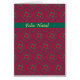A stylish Christmas Card with the greeting (Feliz Natal) in Portuguese, with an all-over pattern of baubles and stars in festive red and green with gold-coloured lettering. You can also add your own message to the inside of the card.