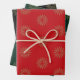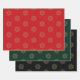 Christmas red green black gold stars snowflakes wrapping paper sheet