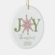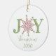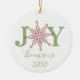 Simple snowflake typography design. A personalised custom modern holiday Christmas photo ornament that features name and year. A wonderful addition to your family tree or makes a great gift. This design features Christmas holiday red and green, cute snowflake joy typography, holiday home décor, festive whimsical winter script, winter colourful bright, Christmas tree décor, family personalised name, custom customise simple minimalist, Christmas decoration, Christmas gift ideas
