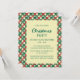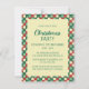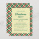 This Christmas Party Invitation Card features a green retro font text on a cream frame against on Christmas colour tone puzzle piece pattern background. Personalise them by adding your information. Perfect for corporate, office, and house dinner parties.