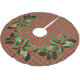 Christmas tree skirt with red, green, and white Christmas Plaid and seasonal holly and berries.
