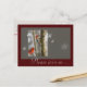 An event invite announcement designed to meet the needs for a Christmas or Holiday Season open house get together that is possible to customise. Use this for a family get together, a winter party, a moving announcement, a family note, anything you choose. The image features a red cardinal and a red bellied wood pecker together on a birch tree in a winter themed environment including snow flake shapes. The colours are warm grey, white, and deep burgundy red. The text on back and front is all customisable to suit your specific needs. This design is born from my own original photography and graphic design work.