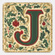 Christmas Red Letter J with Greenery and Gold Square Sticker