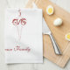 Christmas Red Monogram Bauble Family Name Tea Towel