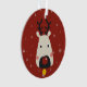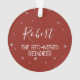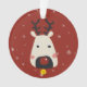This cute Christmas ornament features a fun cartoon red-nosed reindeer, on a festive red background with delicate light grey snowflakes. The back is easily customisable by adding your name on a white calligraphy font, with the caption The red-nosed reindeer