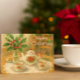 If you adore tea sets, you'll be captivated by this charming Christmas postcard. The design features a delightful digital watercolor illustration of red poinsettias adorning a teapot and teacup. A vase of holly adds to the festive ambiance, all beautifully arranged on a lace tablecloth. Perfect for a tea party invitation or a unique Christmas card.