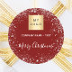 A classic red background, decorated with faux silver glitter, sparkles. Personalise and add your business, company logo and a text. Text: Merry Christmas written with a modern hand letteres style script.