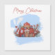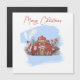 Watercolor Christmas Red Tea Pot House Magnetic Card.