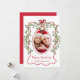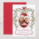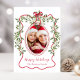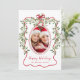 Christmas Red Wavy Frame Bow Greenery Photo Holiday Card