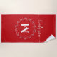 Christmas Red | White Botanical Wreath Monogram Beach Towel