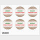 Christmas; Red, White & Green Striped Pattern Classic Round Sticker