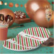 Christmas; Red, White & Green Striped Pattern Paper Plate