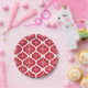 Christmas Red White Snowflakes Lattice Pattern Paper Plate
