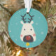 Christmas rednosed reindeer snowflakes & name blue ornament