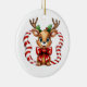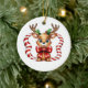 This Christmas ornament is shown with a cute festive holiday reindeer art print.