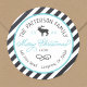 Affordable custom printed round return address stickers personalised with your family name, the year and your return address. This fun design features a striped background, reindeer graphic and modern rustic typography in aqua, white and charcoal grey colours. The text reads "Merry Christmas" in a trendy script font. Use the design tools to edit text fonts and colours to further customise your own unique holiday return address labels.