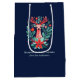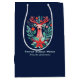 Christmas Reindeer Floral Blue Holiday Medium Gif Gift Bag