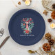 Christmas Reindeer Floral Blue Holiday Paper Plate