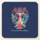 Christmas Reindeer Floral Blue Holiday Square Paper Coaster